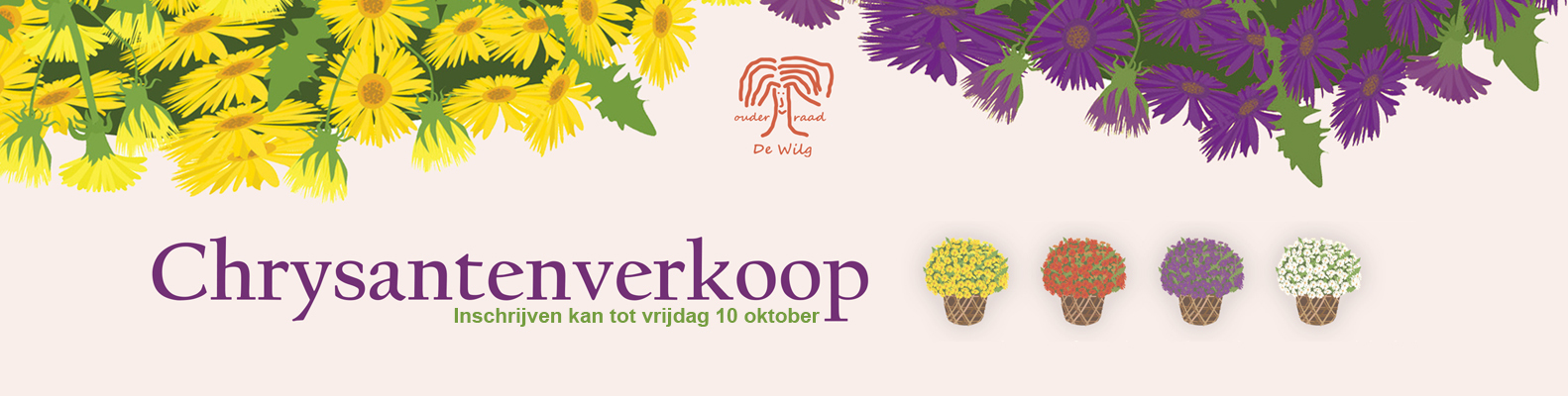 Ook dit jaar organiseren we weer onze chrysantenverkoop!Met de opbrengst kunnen we de kinderen opnieuw iets leuks en lekkers aanbieden, zoals een warme kom soep tijdens de wintermaanden.